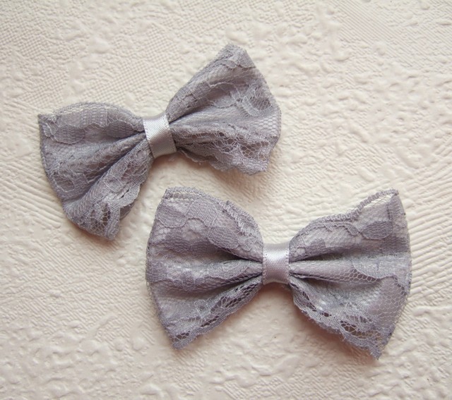 Grote strik van satijn en kant ~ 7 cm ~ Grijs