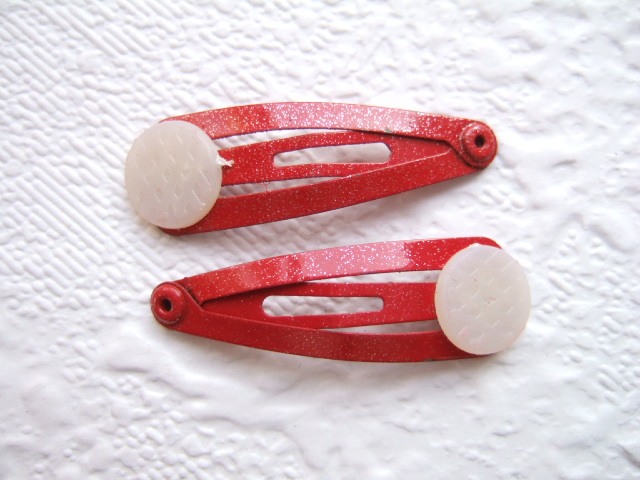 Mooie rood gelakte haarknipjes met iets glitter. haarknipje