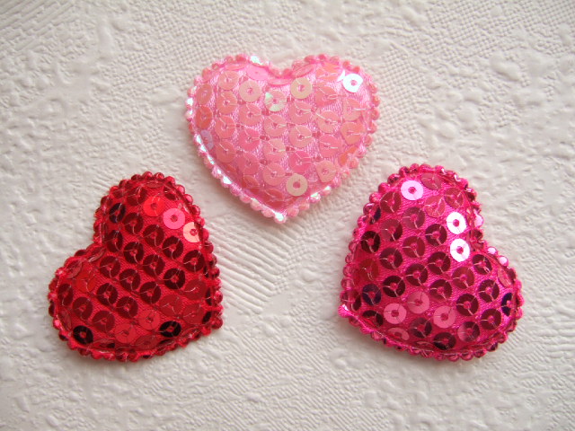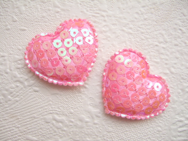 Mooie roze wat dikker gevulde hartjes, bezet met lovertjes.