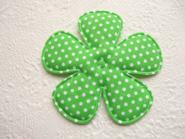 Hele grote katoenen bloemen, groen met witte polkadots.