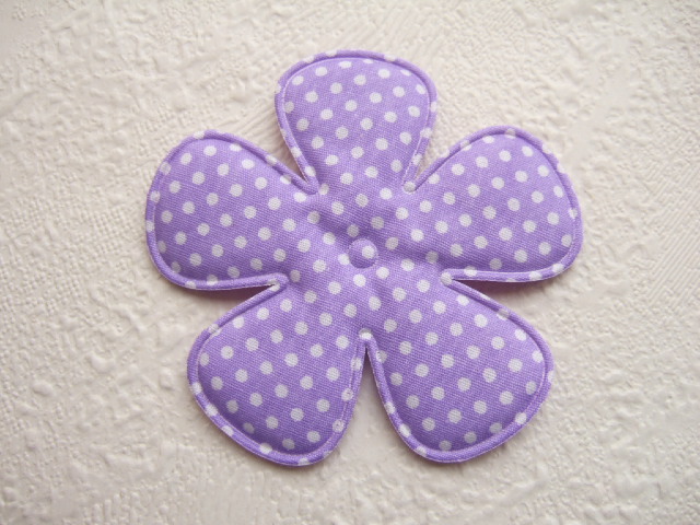 Hele grote katoenen bloemen, lila met witte polkadots.