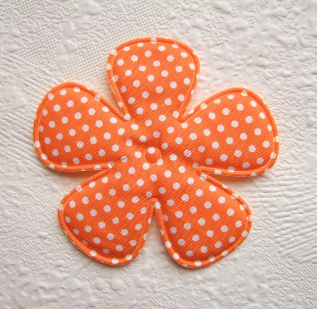Hele grote katoenen bloemen, oranje met witte polkadots.
