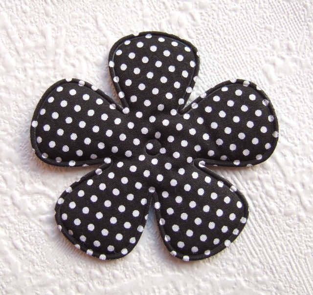 Hele grote katoenen bloemen, zwart met witte polkadots.