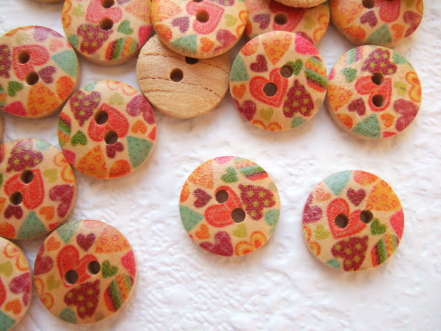 Mooie ronde knopen van hout, met een vrolijke hartjes print.