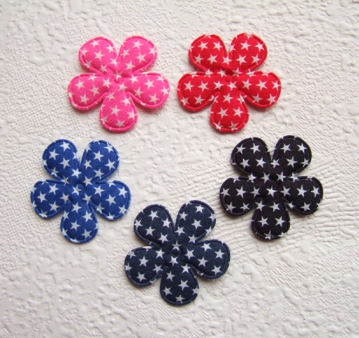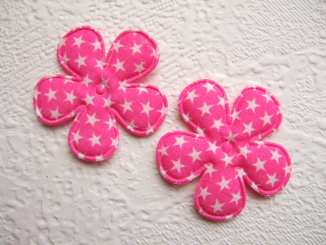 Leuke katoenen bloemen, fuchsia roze met witte sterretjes.