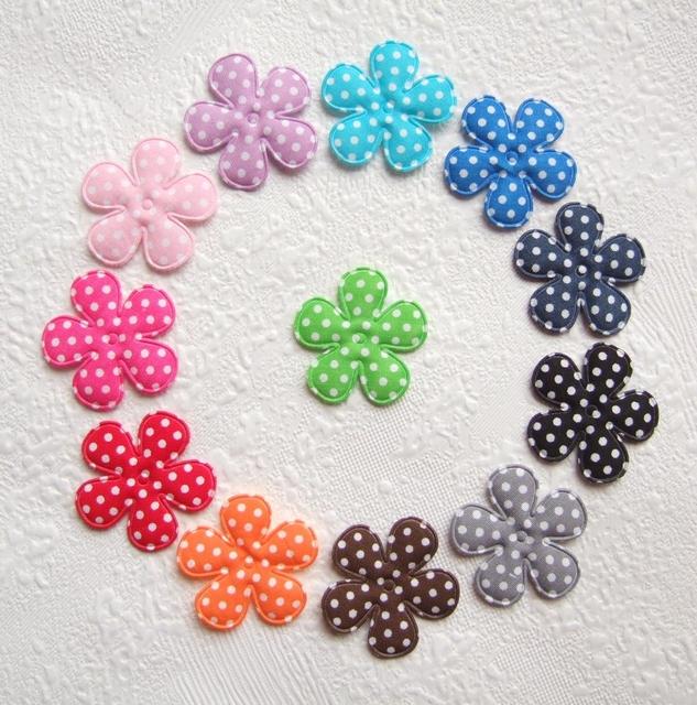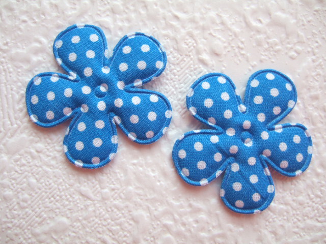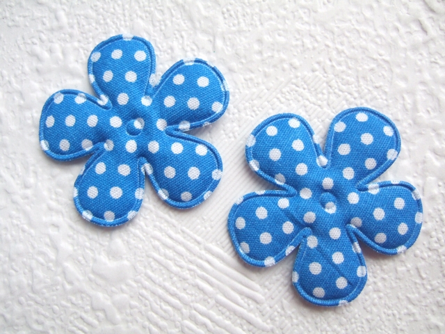Gevulde bloemen van katoen, korenbloem blauw met witte polkadots.