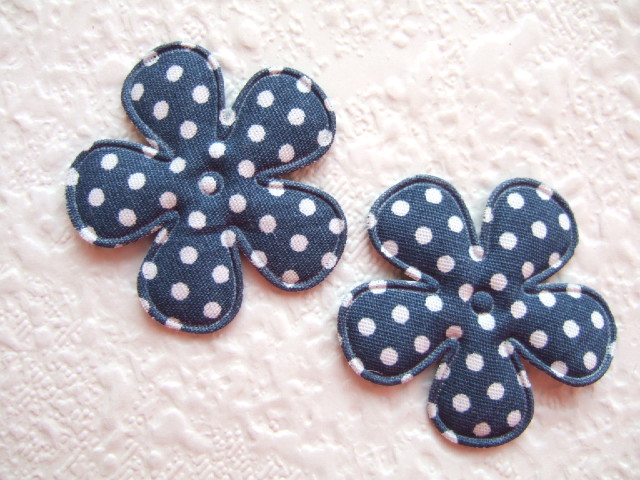 Gevulde bloemen van katoen, donker blauw met witte polkadots.