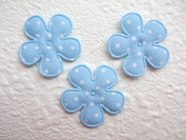 Katoenen gevulde bloemen, licht blauw met witte stippen.