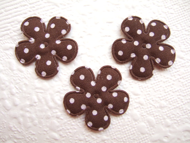 Katoenen gevulde bloemen, donker bruin met witte stippen.