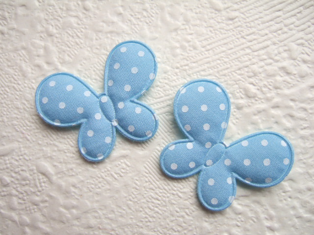 Mooie licht gevulde katoenen vlinders, licht blauw met witte stippen.