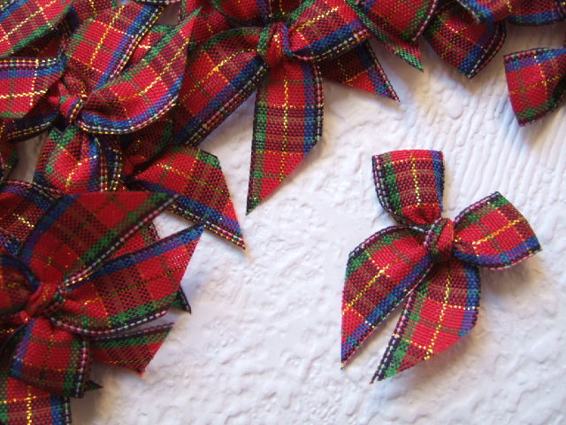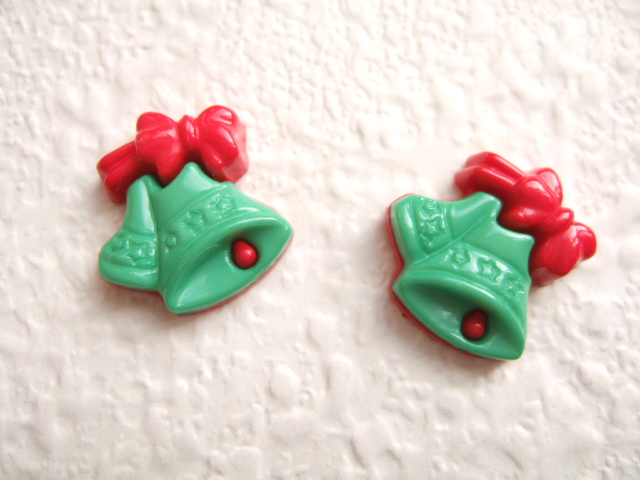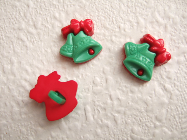 Mooie groene kerstklokjes knopen met een rood strikje.