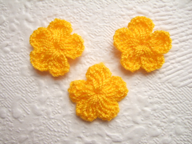 Kleine ei mais gele gehaakte bloemetjes.