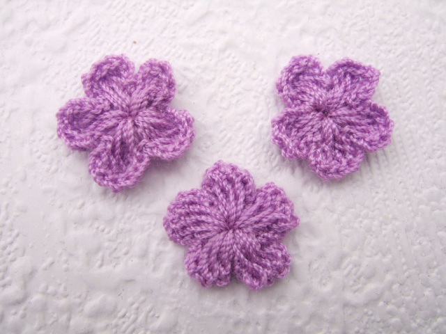 Kleine licht paars gehaakte bloemetjes.
