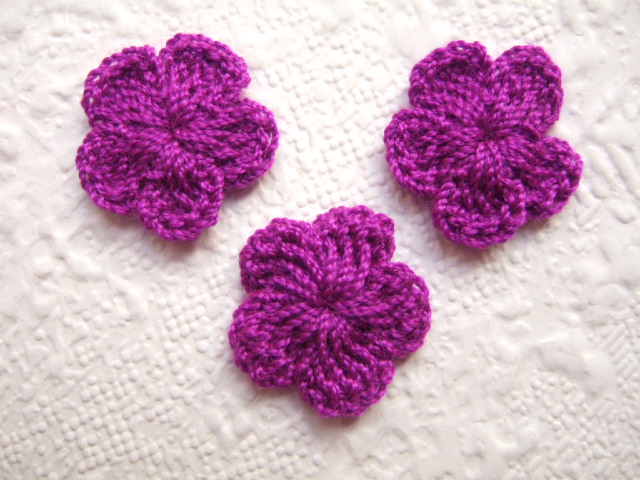 Kleine paarse gehaakte bloemetjes.