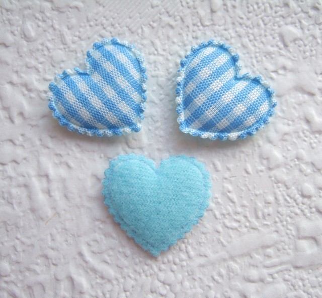 Mooie blauwe gevulde hartjes met ruitjes.