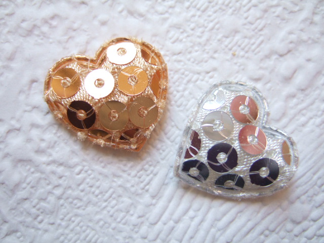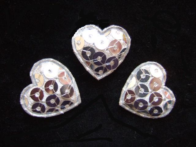 Mooie gevulde hartjes, bezet met “zilveren” lovertjes.