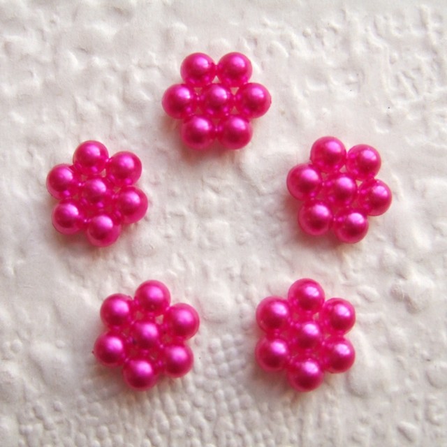 Lieve kunststof bloemetjes van “parel” kraaltjes met een fuchsia roze parelmoer glans.