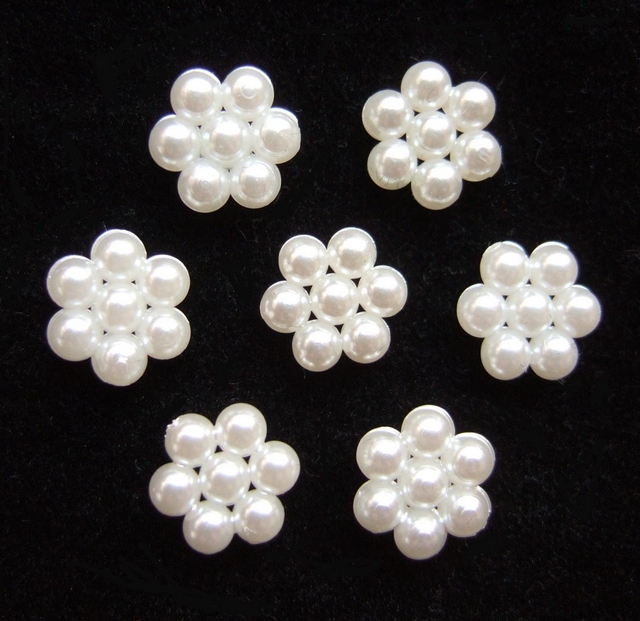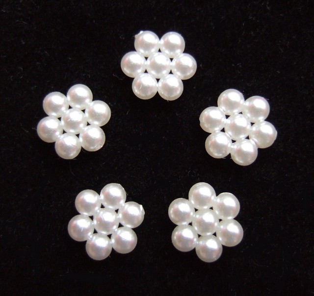 Lieve kunststof bloemetjes van crème “parel” kraaltjes.