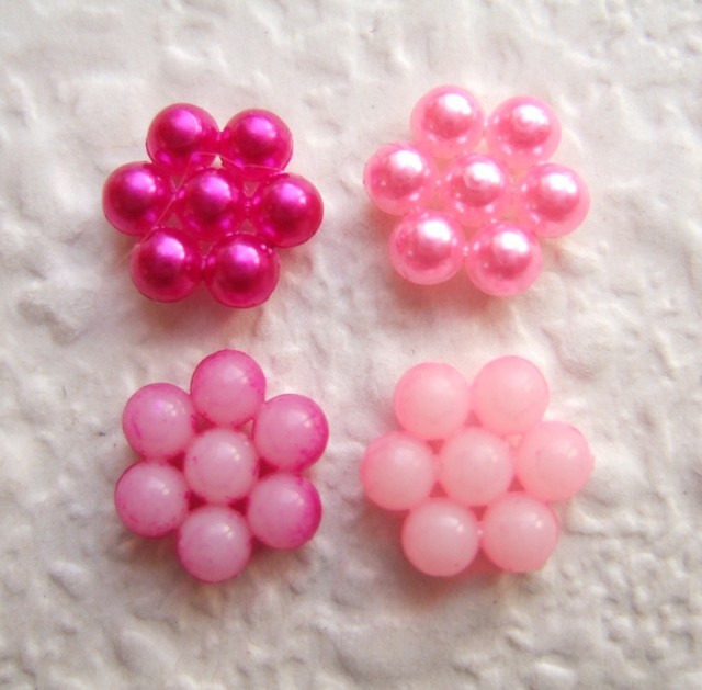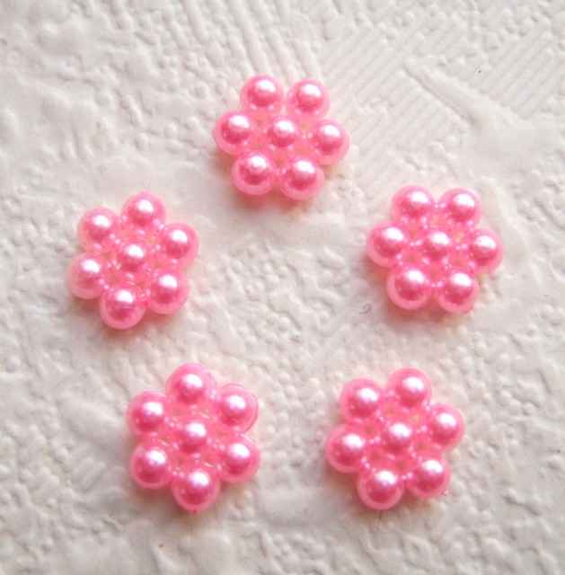 Lieve kunststof bloemetjes van “parel” kraaltjes met een roze parelmoer glans.