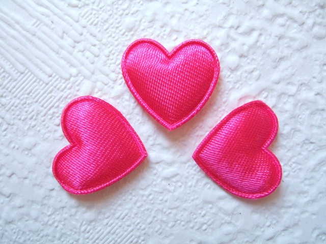 Klein gevuld donker roze hartje van satijn met een gladde rand.