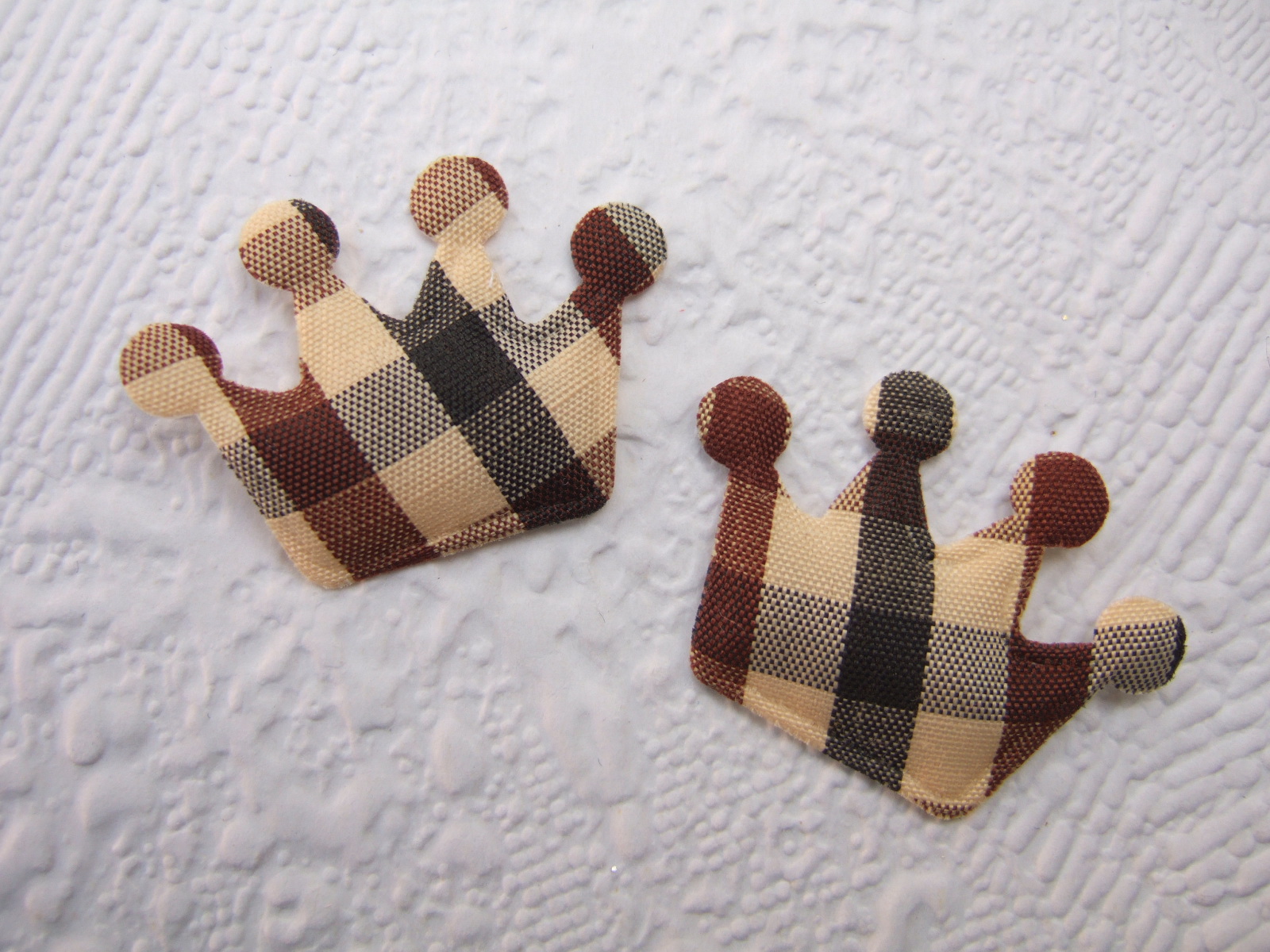 Iets gevulde kroontjes met brede tweekleurige ruitjes.