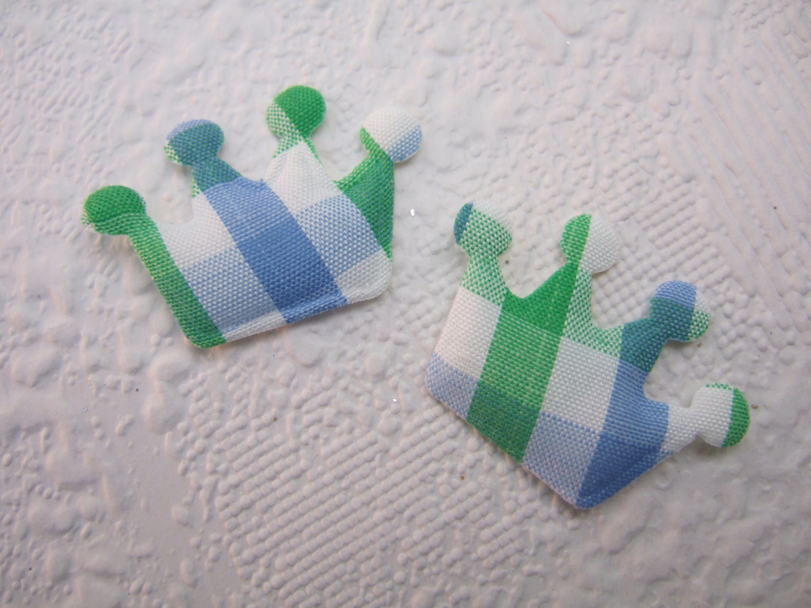 Iets gevulde kroontjes met brede tweekleurige ruitjes.
