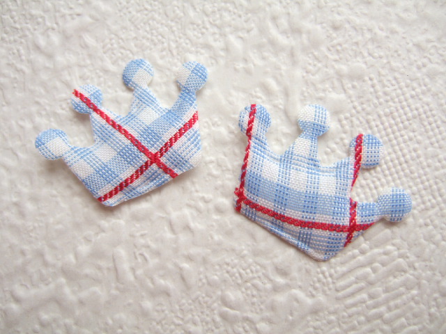 Mooie gevulde kroontjes met tweekleurige ruitjes in blauw/rood.