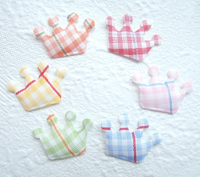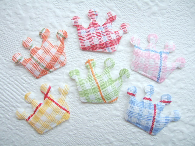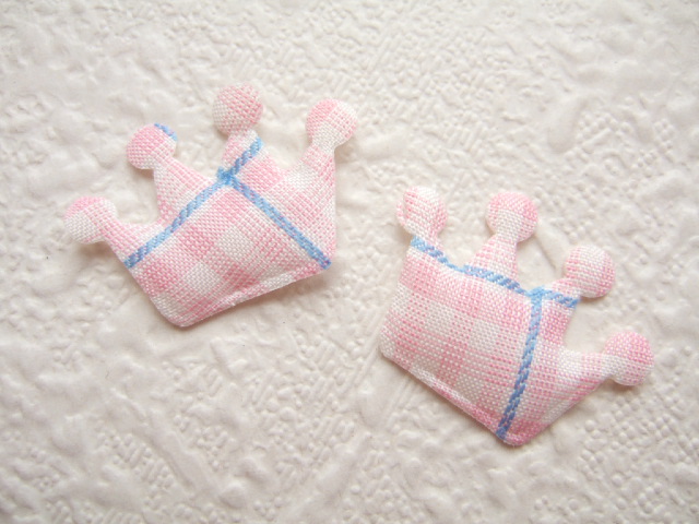 Mooie gevulde kroontjes met tweekleurige ruitjes in roze/blauw.