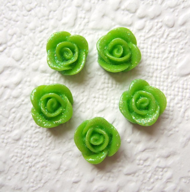 Lieve roosjes flatback met glinster ~ 11 mm ~ Groen
