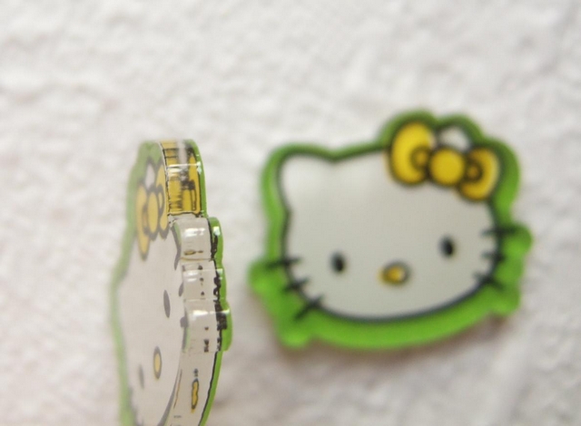 Helemaal platte Hello Kitty flatbacks van helder acryl.