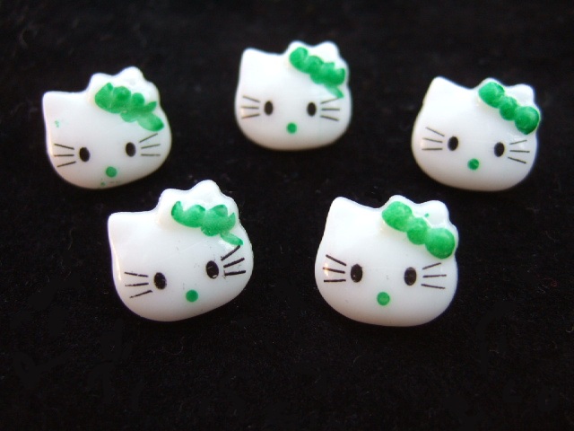 Leuke “Hello Kitty” knoopjes met een gras groene strik.