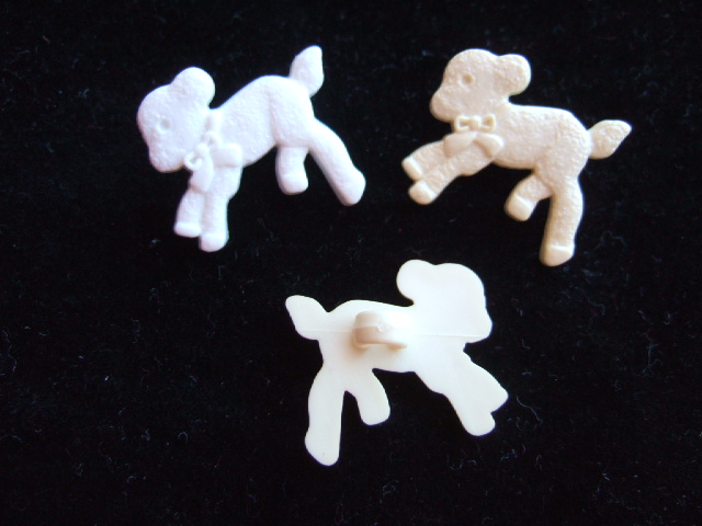 Schattige crème schapen knoopjes met een oog aan de achterkant.