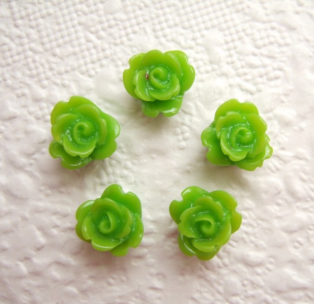 Bij de rode 3,5 cm bloem zie je het verschil tussen de 9 en 12 mm roosjes.