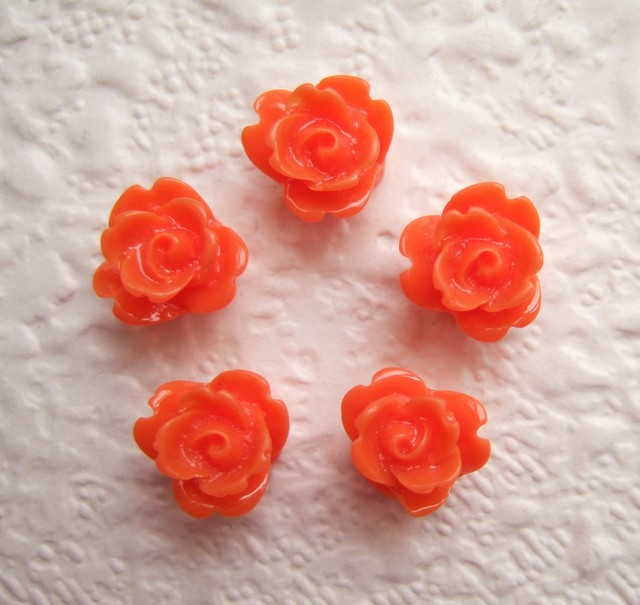 Bij de rode 3,5 cm bloem zie je het verschil tussen de 9 en 12 mm roosjes.