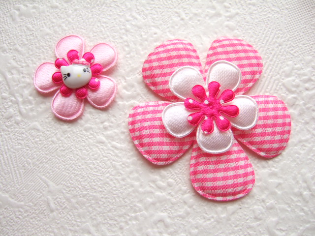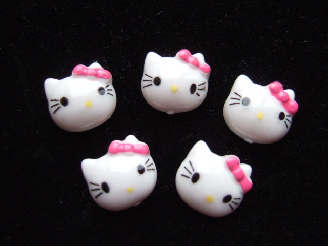 Kleine witte Hello Kitty flatback met een roze strik.