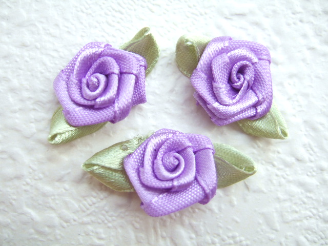 Prachtige licht paarse satijnen roosjes met groene blaadjes.