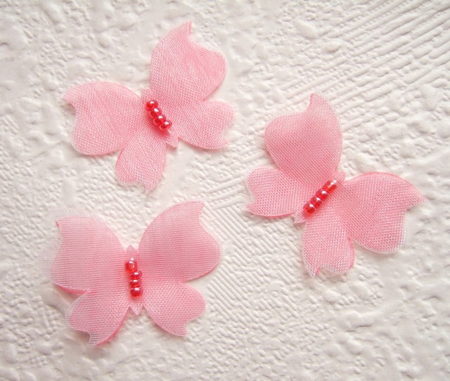 Lieve vlinders van dubbele organza in twee tinten roze.
