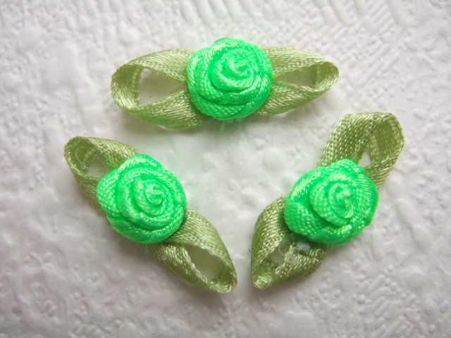Prachtige fel groene satijnen roosjes met groene blaadjes
