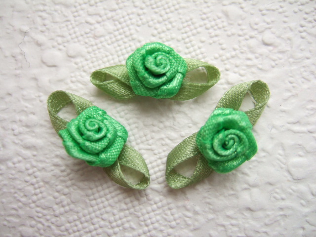 Prachtige groene satijnen roosjes met groene blaadjes