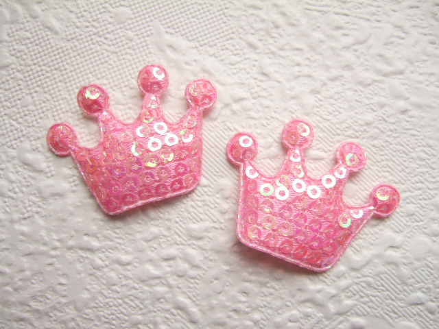 Mooie gevulde kroontjes, bezet met roze lovertjes.