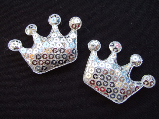 Mooie gevulde kroontjes, bezet met zilveren lovertjes.