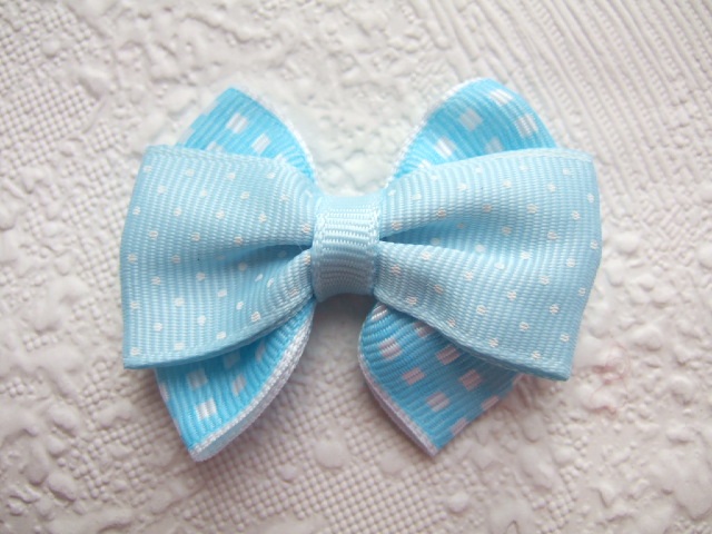 Mooie dubbele strikjes van blauw – wit grosgrain band.