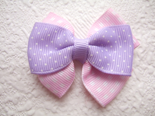 Mooie dubbele strikjes van lila – roze – wit grosgrain band.
