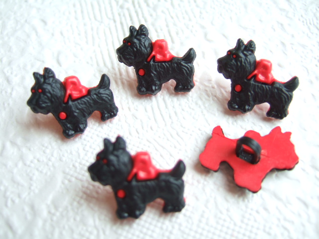 Mooie zwart-rode knopen van een Schotse Terriër, hond