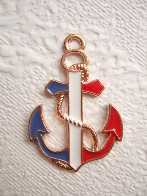 Mooie goud kleurige ankertjes, geëmailleerd in rood / wit / blauw.