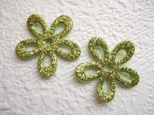 Mooie opengewerkte zacht goud groene glinster bloemetjes.