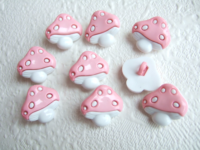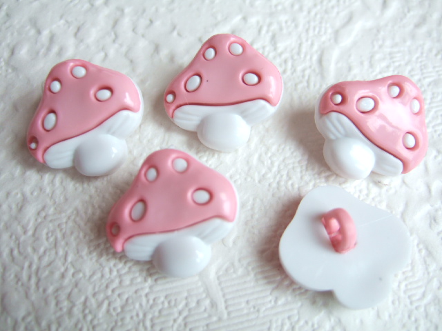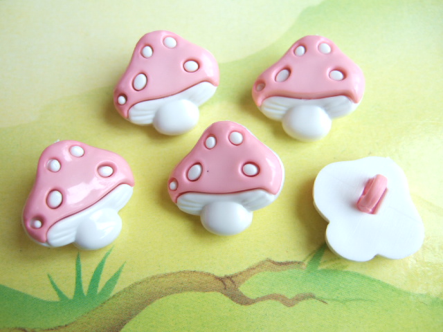 Mooie paddenstoel knoopjes in roze/wit.
