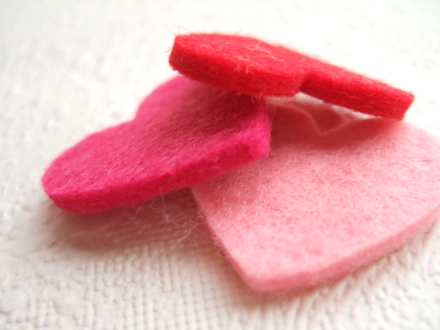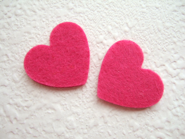 Mooie fuchsia roze hartjes van (kunst?) vilt.