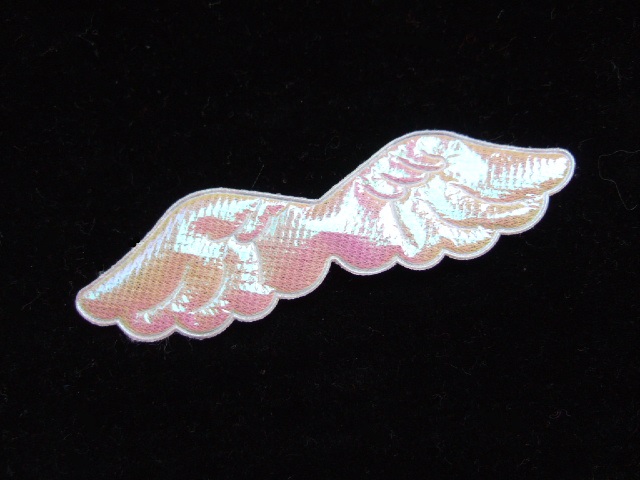 Mooi glanzend engelen vleugeltje, wit met iets roze glans.