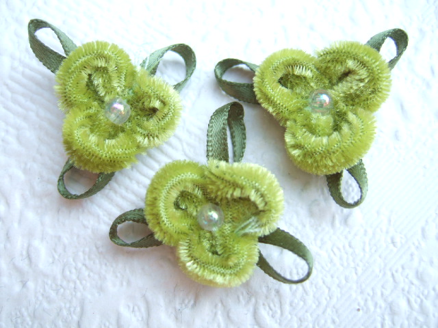 Prachtige groene fluweel roosjes op een groen satijnen blaadje.